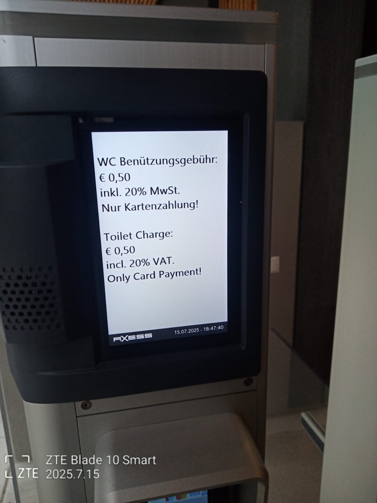 Schade das es hier wie es scheint bis dato keine solch „stilles Örtchen“ gibt wo es auch möglich ist, ohne finanzielle Mittel, seine Notdurft zu verrichten.
